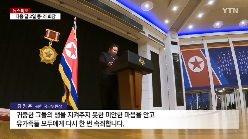 중국 방문을 앞둔 김정은 북한 국무위원장이 러시아 파병으로 희생된 장병들의 유족들을 만나 이례적인 행보를 보였습니다. 국빈을 맞을 때나 사용되는 최고급 연회장인 목란관으로 유족들을 초청한 그는, "귀중한 그들의 생을 지켜주지 못한 미안한 마음을 안고 유가족들 모두에게 다시 한 번 속죄합니다"라는 파격적인 표현까지 사용하며 민심 달래기에 나섰습니다.