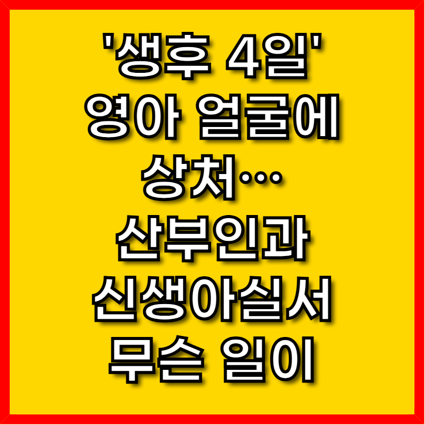 지난 2일, 경기 부천시의 한 산부인과 신생아실에서 생후 4일밖에 되지 않은 영아의 얼굴에 멍 자국과 상처가 발견되는 충격적인 사건이 발생했습니다. 산모 A씨는 이날 모유 수유를 위해 신생아실을 방문했다가, 불과 3시간 전에는 깨끗했던 아기 B군의 오른쪽 눈 주변에 붉은 상처와 멍 자국이 생긴 것을 보고 경악했습니다.