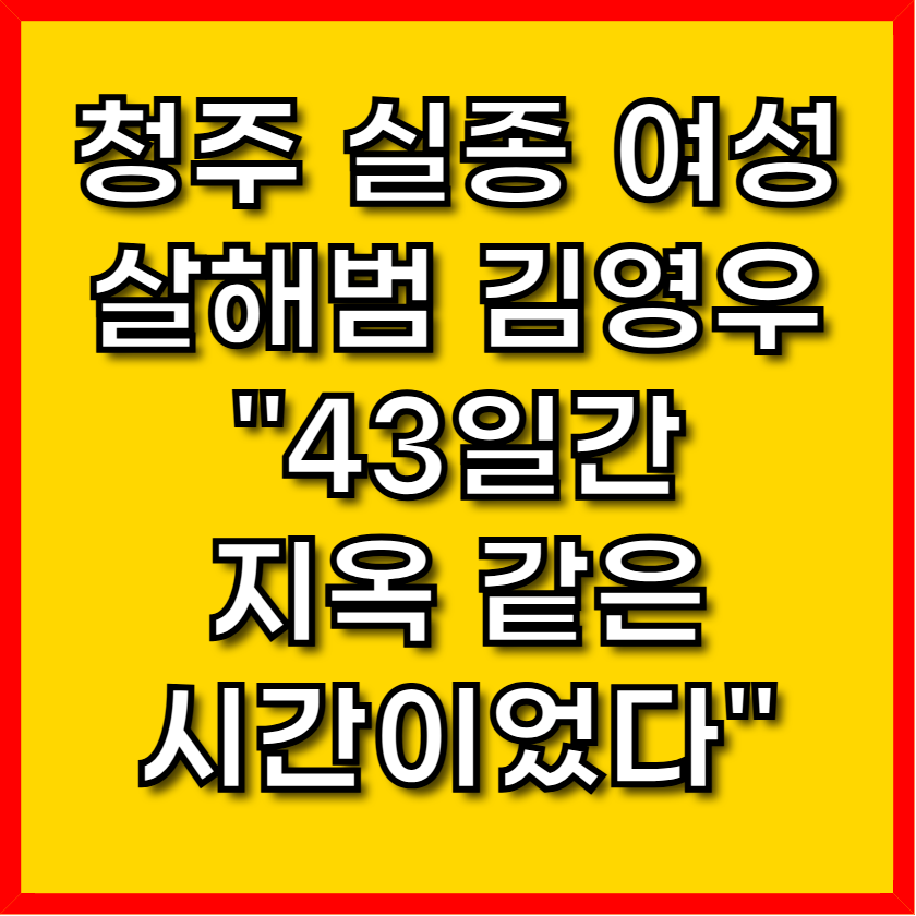 청주 실종 여성 살인 사건의 피의자인 김영우(54)가 살인 및 사체유기 혐의로 검찰에 구속 송치되는 과정에서 취재진 앞에 섰습니다. 그는 지난 10월 14일 범행 후 체포되기까지의 43일간의 심경을 묻는 질문에 "지옥과도 같은 시간이었다"고 짧게 답했습니다. 이 발언은 범행 은폐를 시도했으나 죄책감과 발각될지 모른다는 공포 속에서 보낸 도피 행각의 고통을 간접적으로 시사합니다.