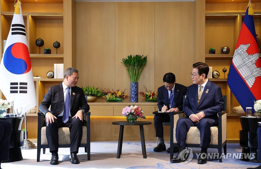한-아세안 정상회의 참석차 말레이시아를 방문 중인 이재명 대통령이 27일(현지시간) 훈 마네트 캄보디아 총리와 정상회담을 가졌습니다. 이번 회담은 최근 캄보디아에서 한국인을 대상으로 한 납치·구금 및 사망 사건 등 스캠(Scam) 범죄 문제가 사회적 현안으로 떠오른 시점에서 이루어져, 양국 정상 간의 논의 내용에 특히 관심이 집중되었습니다. 양 정상은 민감한 범죄 공조 문제뿐만 아니라, 양국 관계 발전 방안과 국방·안보 분야의 교류 확대에 대해서도 심도 있는 대화를 나누었습니다.